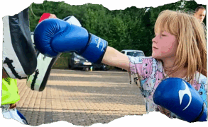 du lernst ausserdem effektive Selbstverteidigungstechniken und „schlagkräftig“ Stress abzubauen.